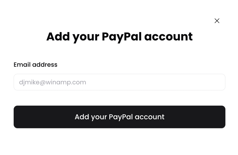 - In the pop-up window, add the email address with which you've registered a PayPal account.